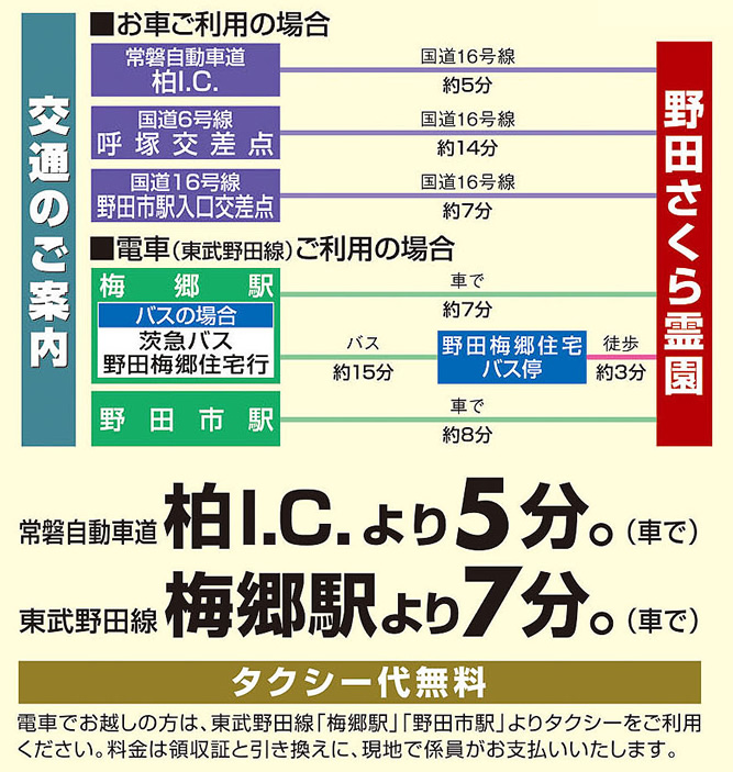 ■芝急バス、野田梅郷住宅バス停下車、歩いての墓参が可能です。