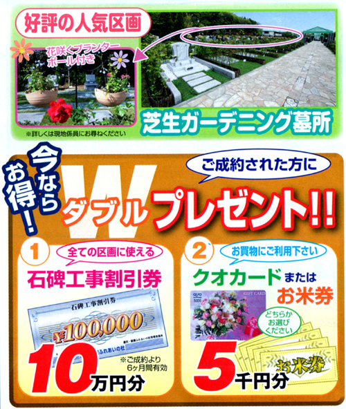 1.全ての区画に使える石碑工事割引券10万円分