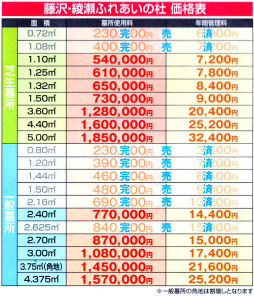 >0.72㎡芝生墓所のセット価格が墓所使用料、石碑、消費税を含んで