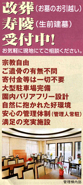 宗教自由、ご遺骨の有無不問、寄付金等は一切不要。
