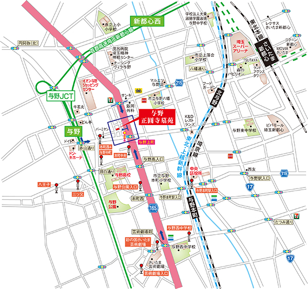 首都高速埼玉大宮線「与野I.C.」よりお車で約5分