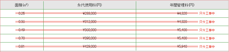 永代使用料/彫刻料/墓石/工事一式/外柵/消費税